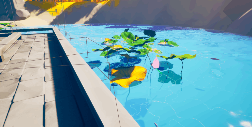 Most of the art work is now essentially finished. This week, we focused on polishing and final fixes. We resolved an issue with strange reflections of water surface, making the water look more natural and consistent with the rest of the scene. We also optimized several transparency planes across the environment to improve performance and reduce unnecessary rendering load. Adjust some fish swim path. With these adjustments, the overall visual quality and stability of the experience have both improved, and the art assets are now in their near-final state for Festival.